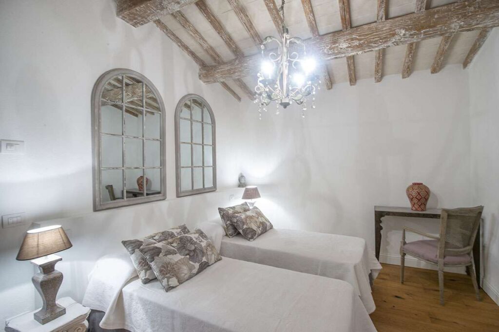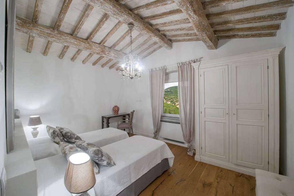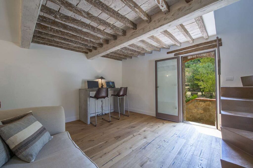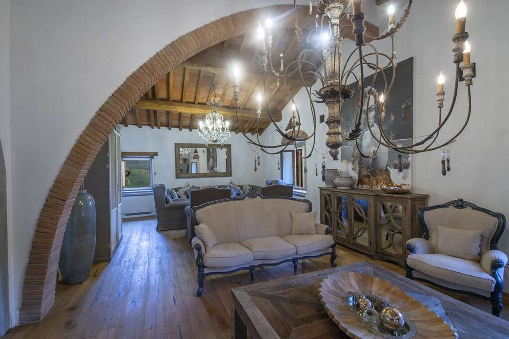 All’ingresso vi accoglie un ampio salone, caratterizzato da arredi di forte personalità e da un’atmosfera calda e scenografica, ideale per ritrovarsi tutti insieme. Sullo stesso livello sono presenti due camere da letto e un angolo più riservato, perfetto per chi desidera un momento di tranquillità o una breve sessione di lavoro. Uno degli ambienti più caratteristici della villa è la camera situata nella torre, raggiungibile attraverso la scala interna: un alloggio unico, che permette di vivere da vicino la storia della proprietà e di immergersi completamente nell’identità del luogo. Scendendo di pochi gradini si raggiungono la cucina e la sala da pranzo, il cuore operativo della villa, collegati a un corridoio che conduce ad altre camere e all’accesso della SPA. Al piano inferiore si trova infatti una piscina interna riscaldata con idromassaggi, sempre disponibile per un’esperienza di benessere privata in ogni stagione. Completa la proprietà un’ultima camera particolarmente comoda anche per ospiti con mobilità ridotta, grazie agli spazi più ampi e alla possibilità di accesso diretto dall’esterno. Tutte le camere dispongono di bagno en suite, per garantire privacy e comfort a ogni ospite. All’esterno, dalla cucina si accede a una zona perfetta per vivere la villa all’aperto: outdoor cooking area + barbecue, grande tavolo, divanetti e area dining in pietra. Da qui si raggiunge l’area piscina panoramica, composta da una piscina sopra terra e da una vasca ornamentale (profondità 60 cm) che arricchisce l’atmosfera con un tocco scenografico. Sullo stesso piano del salone troverete una sala lavanderia, un salottino distaccato con un enorme divano e maxischermo, un bagno di servizio e il corridoio che porta a 3 delle camere da letto della Villa, da qui troverete anche una scala in pietra serena che conduce al piano superiore al quale potrete accedere anche tramite una porta che si affaccia sul versante superiore della proprietà, su questo piano troverete 4 camere da letto. In totale la Villa conta 7 camere da letto ognuna dotata di bagno en suite. All'esterno di Villa Il Tinaio troverete un parcheggio per 7 automobili, una grande piscina infinity con vista sulla vallata, affiancata da un grande prato inglese che unisce la piscina con lo spazio adiacente il salone, nel quale troverete un grande tavolo di legno e dei comodi divanetti con dei splendidi ombrelloni e il barbeque definendosi spazio perfetto per giornate insieme all'insegna di buon cibo e divertimento. Sono presenti numerosi terrazzamenti che disegnano il giardino della proprietà dando simmetria e ed eleganza classico dei giardini all'italiana, lo spazio è disegnato per seguire l'andamento discendente della vallata garantendo comodi spazi e rendendo agevole l'esplorare i dintorni della proprietà.